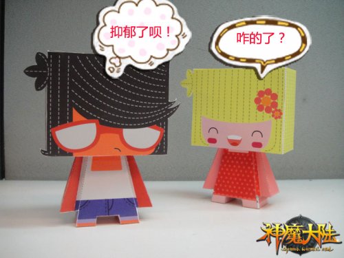 近期《神魔大陆》根据游戏玩家的不同性格,为大家量身打造了“神魔玩意”六大系列人物纸模。而最近纸模中的高玩哥却出现了一段小插曲,一向桀骜不驯的高玩哥开始变的闷闷不乐,把自己关在家里两天没上游戏、没出门,这可极坏了平日里一起练级的模友们,尤其是对高玩哥无比崇拜的菜鸟M,更是心急如焚一定要找到高玩哥,看看究竟发生了什么事。 菜鸟M:O(∩_∩)O哈哈~高玩哥!终于找到你了,为什么愁眉苦脸的啊? 高玩哥:哎!悲哀啊! 烦恼中的高玩哥