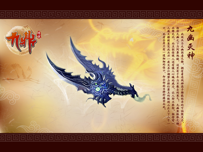 旷世神兵 曾几何时,人族大将军手持承影炽天剑纵马定乾坤,仙族长老轻摇伽蓝星雨杖救赎苍生,蛮族首领则挥舞摩罗浮屠斧斩妖除魔,平定四方。旷世神兵自铸就之日起,就注定为震动凡界的惊天巨变而生,历经血与沙的考验让它们与自己的主人一样,渐似超越了具象形体的束缚,步入了似神非神的境界。 九幽灭神——阿鼻地狱千年不散之寒气凝炼而成的阴毒之物 上古神话时代是一个充满神话色彩和原始野性的世界,无论是八大神器还是凡界的神兵利刃,在它们神秘而强有力的外表下面,都有着一颗躁动不安的灵魂,在等待着救世英雄的降临。《九鼎传说》神兵谱上所记载的,仅仅是散落凡界的一部分为人所熟知的宝剑名刀,而更多的还在等待着它的主人现身,令其锋芒毕露。你,是否就是那个与神兵利器一同腾空出世的英雄?我们拭目以待! 关于《九鼎传说》 《九鼎传说》是搜狐畅游(NASDAQ:CYOU)首款以上古神话为题材,PK为主题的大型多人在线网络游戏。古典粗犷的游戏画面,风情万种的九州画卷,构建了的上古世界。玩家可扮演各族英雄寻找九鼎,并在乱世中开创霸业。真人动作捕捉技术的采用,使人物技能更真实、更酣畅,更具打击感;在多人PK玩法上,引入结界阵法对战、世家阵营动态对抗体系和体感双重PK系统等创新玩法,旨在引导玩家从为自己而战到为兄弟、为朋友而战,浓郁的江湖气息为玩家带来“最具江湖味”的PK网游体验。 这里只有过命的兄弟! 最具江湖味的PK网游——《九鼎传说》 [编辑:糖糖] |