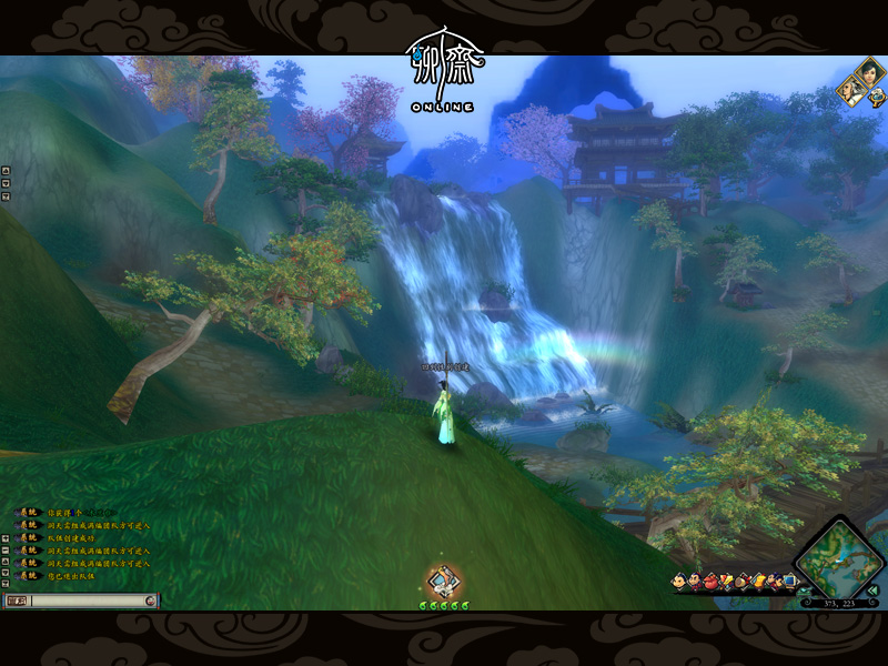 水墨画面特色,玩法刮起中国风 西洋画注重写实而传统中国水墨画追求的是一种意境。《聊个斋》秉承中国传统水墨风潮,长安城高大的城墙,崂山青素淡雅修仙之境,玉门关外黄沙万里等真实还原神州地理风貌。 服饰上的京剧服装,以及即将推出以丝竹演奏为主的游戏原创背景音乐,烧香、问道仙山、超度亡灵及国庆特别活动“祈福天灯”等诸多玩法无不彰显闪亮的中国元素,博大精深的中华文化。