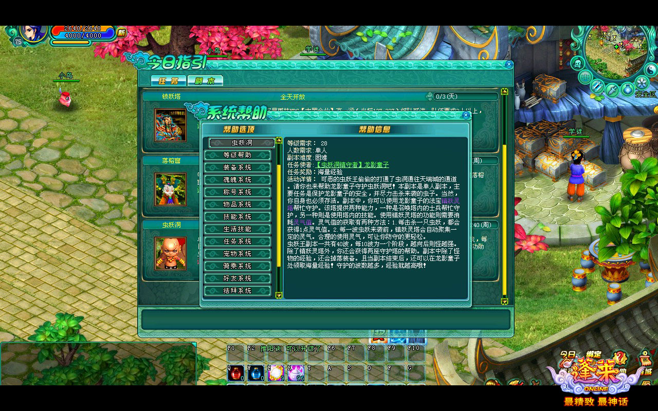 任务与副本详细描述 在今日指引的副本界面,有一个非常贴心的设计,通过副本导航栏的光粒子环绕动态效果,来提示你今天还有副本没做。所谓细节决定成败,把小事做好,把细节做到位,这款游戏才能更贴近玩家。还有一个星级设计,你可以方便了解到该何时参加活动,自己的等级适不适合参加该活动等内容,用一种最方便、最快捷的方式将所有的常态活动展现在玩家的面前。