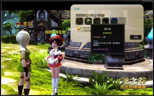 增加NPC好感度,收意外好礼 在全球同步版中加强了玩家和NPC的互动。通过赠送特定NPC礼物,可以增加NPC好感度。好感度提升之后,玩家和NPC的对话内容会有所改变,还可以收到特别礼物。 不过每个NPC所想要的礼物有所不同,想要和特定NPC亲近的话,可要先了解他/她所想要的礼物是什么。送给NPC的礼物可以通过副本掉落和自己制作两种方式获得。想知道NPC会告诉什么秘密,会送你什么好礼?那就准备好你的礼物吧。 送你传说中的四叶草,花语是幸福