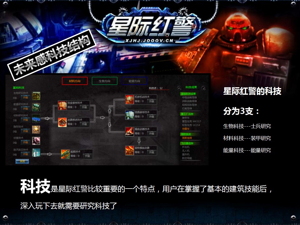 多方向的科技文明发展 作为次世代科幻题材巨作的《星际红警》不但战争场面宏大,而且还很注重细节上的发展。从基地建立开始,就要确定自己的发展方向。游戏提供了“三门六系”的不同科技发展道路,让你可任由自己的意愿去发展属于你自己的独特发展之路。成为一个有自己独特科技发展文明的未来帝国。 完美的科技发展体系