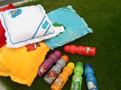 色彩缤纷的运动水壶、靠垫,看起来就很有活力。