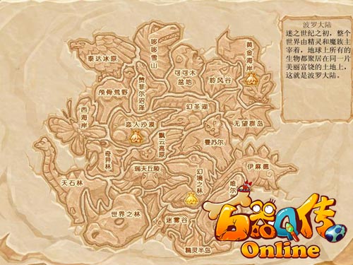 秀秀:逗逗你看,这是什米东东? 逗逗:咕~~(╯﹏╰)乱七八糟的写的啥么嘞? 秀秀:“《石器Q传》召集令——在2012年到来之前,去找到精灵遗失的13个水晶头骨,否则波罗大陆所有生物将面临一场前所未有的浩劫……”波罗大陆?听起来很神秘的说捏! 逗逗:难道这是传说中的藏宝图?(无限遐想中……) 就是这张“藏宝图”啦,你看出其中的玄机了吗? 秀秀:藏宝图?那要是我们能去到那个波罗大陆,岂不是就能挖到宝咯!哇哈哈~看来妞儿我今天人气大爆发捏!快看看这个波罗大陆怎么去咩? 逗逗:(如此这般的研究一番)这样这样,再那样那样……哈哈,波罗大陆,我们来咯~走着!