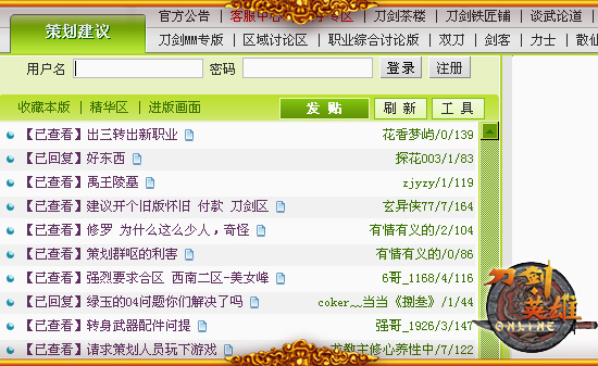 《刀剑英雄》官方微博,从游戏最新动态到各种丰富的奖励回馈活动都几乎做到了实时更新,让玩家足不出户便能掌握第一手资讯,堪称最火爆的游戏微博!比如,前不久的中秋节,微博适时开启“团祈?微博心愿”活动,开贴倾听稻米的心声,并分两批送出多个游戏内道具,用实际行动真情回馈长久以来支持游戏的玩家,满足大家的中秋心愿! 拥有多重内容的论坛,是稻米们的家 公测至今,《刀剑英雄》已经走过了六个年头,六年的时光与人气的沉淀,使官方论坛拥有了其他新游戏无法媲美的优势。论坛是稻米们尽情撒欢的温馨家园,在这里,大家晒图晒故事,结交朋友,甚至只是随意的聊会儿天,却能找到奇妙的归属感。