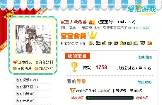 好高的成就,成就排名第六。 “我哥哥”名字太赚人家便宜了,一直战斗不息的男人!