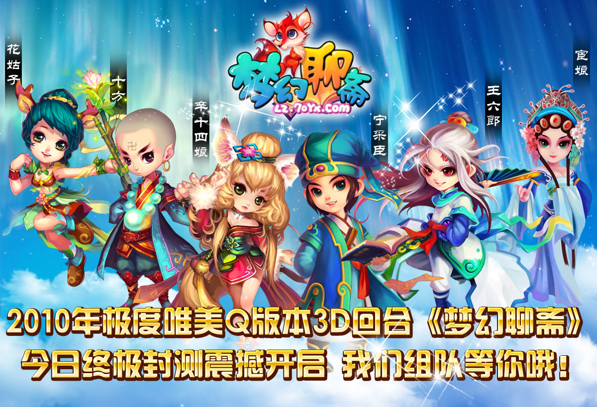 今日,2010年极度唯美Q版3D回合网游大片《梦幻聊斋》18:00震撼开启终极封测。据悉,各大媒体发放限量激活码活动正在火热进行中,而获得激活码的玩家可以第一时间进入游戏,三界五行,任你纵横,体验人鬼妖仙的唯美浪漫世界! 《梦幻聊斋》今日终极封测“我们组队等你哦” 《梦幻聊斋》自年内曝光以来,先后荣获年度产业年会、风云榜双料“最受期待网游”大奖,被誉为回合网游十年期待大作。从繁华的金陵城到凄美的奈何桥,从神秘的桃花岛到飘逸的崂山,从阴冷的阴阳界到冶艳的兰若寺,绚丽多变的人鬼妖仙等诸界众生相,尽在唯美Q版回合大作《梦幻聊斋》10月15日终极封测!