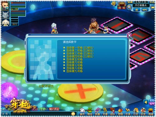 《穿越OL》新玩法 九宫格大逃杀 活动地点: 天行者据点 活动NPC : 乐透活动售票员 活动时间: 每日19:00—19:15 活动规则: 该游戏氛围场内参与和场外参与两个部分。 1 场内参与 a 活动开始后,玩家可在乐透活动售票员那里,花费10点乐透值进入场地。 b 进入场地的玩家点击九宫格大逃杀主持人,缴纳游戏币1000快开启游戏,游戏币放入奖池内作为奖金。 c 选择号码进入对应的格子等待系统开奖,每次开奖系统会随机一个格子的玩家全部等待死亡(死亡后无损失,场外复活) d 等待死亡的玩家随机配对,进行猜拳,输的一方即被淘汰,赢方继续游戏。直至剩下最后一个人,即为最后赢家。 2 场外参与 如果玩家不想入场参与游戏,在场外也可以跟场内玩家互动。每猜中一次可获得5点乐透值。乐透值为参加活动和购买乐透彩票的必备品。 大逃杀,不仅仅是对能力与智慧的考验,还需要幸运之神的眷顾。通过了重重考验,打败了无数敌手,能战斗到最后的,不只是强者,也是幸运儿。这时,要像我们梦中的英雄那样,站在胜利的巅峰,仰望苍穹,大声疾呼:“我,是笑在最后的英雄!”《穿越OL》,让你圆了英雄梦。
