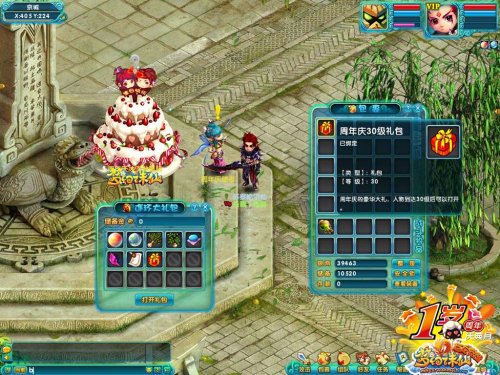 周年大礼 绝世宠物免费领 为了庆祝《梦幻诛仙》一周岁的生日,10月22日当天,每位玩家都会收到系统自动派发的邮件,通过邮件内的道具“似水流年”,玩家即可在“周年庆使者”处免费领取周年大礼包,小太乙仙丹、小天香雨露、修为结晶、返生丹、快速种子等丰富好礼通通归你。不仅如此,用礼包内赠送的信件,达到60级后,可在周年庆使者处换取绝世宠物“星娃”。 周年大礼免费送