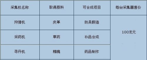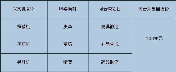 在《中华英雄》中,生活技能共分为三种:狩猎、采药、寻丹,它们可是游戏里不能缺少的经济活动。行走江湖,身上回复气血的药材就是财政的一大支出,想节约钱?那就自己动手丰衣足食,生活技能样样学,就不用再为生计而苦恼了。如果能活用生活技能,制作任何人都需要的物品,你将成为另一种的富商英雄哦! 三种采集机 如果你想玩转生活技能,就要有精良的工具机器!当你的等级达到10级以后,可以在唐人街,向杂货商人买到三种采集器,所有采集器初始耐久为50/50,使用时每一分钟采集一次,每次耐久扣1,扣完只要再找商人花费游戏币修理,就可以再度使用了,修理时可完全修复目前耐久数值,不扣最大耐久值喔!不过切记,采集器只要一经购买,就不能卖给商店啦! 非凡体验、激情金秋!《中华英雄》更多新鲜玩法、精彩活动等你体验,现在就与华英雄一起踏上江湖之路,向胜利出发吧! 《中华英雄》——傲气中华 英雄无惧 [编辑:糖糖] |