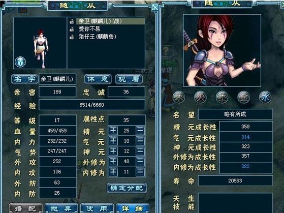 越变越强,梦幻合击术独步武林,从此逍遥江湖游! 随从每次参与战斗结束都会得到一定的经验,和玩家的人物角色一样,经验积累到一定的值就会升级。但是,随从的属性点(每升一级,增加5个属性点)需要我们手动来加。合理的分配属性点,你会发现自己的宠物越来越神武哦! 梦幻麒麟只存在于传说当中? 在游戏中,被收服的随从的初始等级不是最重要的,成长性才是判断一个随从是否是极品的标志。因为随从参与战斗时会获得一定的经验,完成自己的成长。 麒麟儿与麒麟兽是目前可以收服的仅有的0级随从,因为是0级随从所以成长性是最好的,但是如果三个回合内没有被玩家收服,该麒麟就会“逃跑”,所以也是很难抓获的。