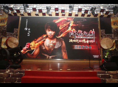 昨日(10月26日),完美时空旗下首款次世代2D传奇网游《降龙之剑》在北京华膳园大宴会厅隆重举行公测发布会。华语摇滚天王、《降龙之剑》代言人信莅临了发布会现场并演唱《降龙之剑》主题曲《降龙乐章》,同时由台湾音乐MV教父林炳存执导,信亲自演绎的同名网游战争大片完整版也于今日震撼发布。 震撼2010年度网游界的《降龙之剑》公测资讯发布会现场