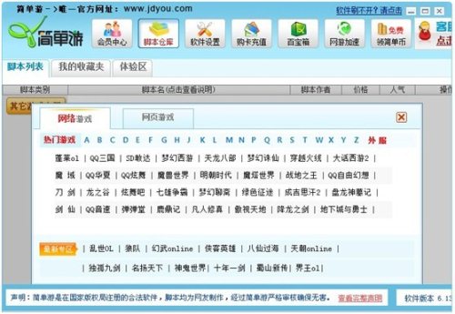 三、简单游脚本仓库 让游戏变得简单 登入简单游软件界面之后,用户可以看到“脚本仓库”选项卡,可以说这就是简单游的“弹药库”,在简单游的脚本仓库里,用户可以找到大量网络游戏和网页游戏的脚本,大多数都可以免费试用。好用才付款也是简单游的一大特色。