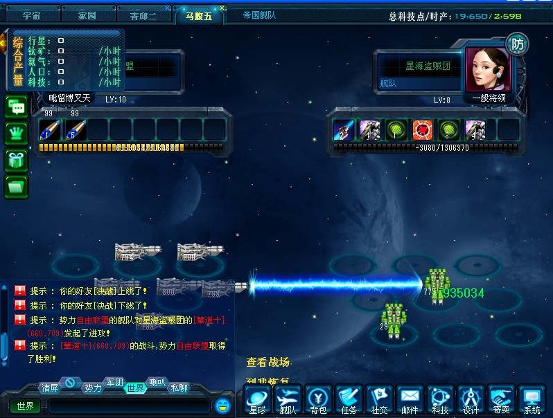 自由联盟似乎自战争伊始就秉持着“只要胜利”的战略,绝不主动挑衅势力比自己强大的势力,目前的形势似乎仍是如此。以往自由式配合着海盗攻打银英,目前则是配合星河进攻海盗。这种以最少的损失获得最大的胜利的做法让自由逐步强大了起来。毕竟,获得胜利才是最终的目标不是吗?而自由的做法的确是奏效了,现在自由的战船是这个势力中最多的。 帝国依然扫荡着地球,同时对海盗的300eu等区域发动攻击。帝国算是用奇兵的势力了,毕竟以帝国地少船少的形式,能够发展到现在占球最多的势力算是不容易的了,该说帝国早期外交成功吗?现在地球对于帝国的强势进攻基本上没有了反抗,难道是想在第二轮的时候在进行复仇? 宇宙形势已经由战国时期发展到了三国时代?谁将会是成为霸主的那一位呢? [编辑:夏日朦胧心] |