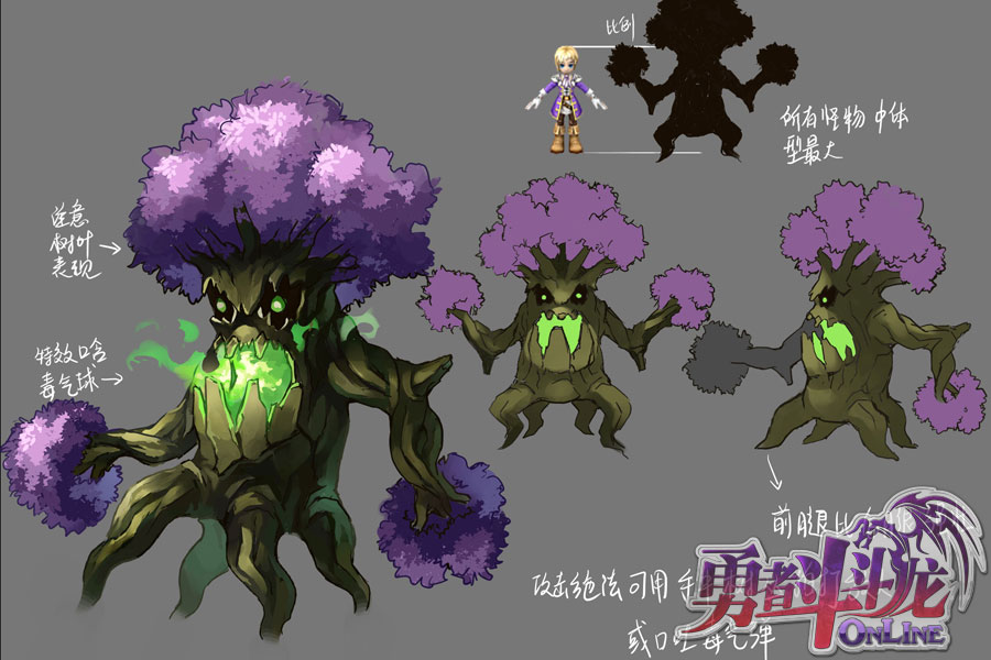 网游数码历时四年,精心打磨的国民级驯龙网游——《勇者斗斗龙》即将在11月11日开启全民内测。历经二次封测的磨砺,《勇者斗斗龙》将以更加优秀的品质呈现给广大的勇者。黑暗女神克诺罗尼带领的恶龙展开了对亚提斯的逆袭,也揭开了亚提斯勇者冒险的序幕。巨龙、剑与魔法等经典的西方魔幻元素,在《勇者斗斗龙》中得到了原汁原味的还原!冒险,从这里开始…… 魔幻的世界里少不了各式各样的奇怪生物,而在亚提斯大陆里高级的怪物又会是一个什么样的形象呢?其实笔者也和众多的玩家一样不得而知,所以趁着美术部的MM们中午去吃饭的当儿,偷来了几张的图纸在这里向大家提前曝光。 【异化的木头:巨木怪】 首先送上的巨木怪,做为在所有怪物中体型最大的巨木怪,给人十足压迫性,在它面前气都顺不过来了。巨木怪的变异正是因为黑暗力量的入侵,使得亚提斯元素力量的溃散、自然之力的消退,巨木一族从体质与形态发生了极大的改变。千百年的成长让它们拥有了匹敌巨龙的力量,元素的变异也让它们成为了一个毒气库,可以随时吞吐毒气。 巨木怪