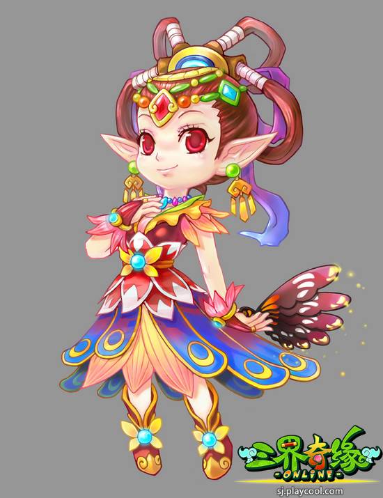 仙族MM之飞天舞姬 特点:轻盈飘逸,婀娜多姿。以舞为攻,以舞为守,动静之间迷人心醉。 擅长兵器:仙女扇、仙女杖 可入门派:天庭、水晶宫、普陀山 玩家点评:像小精灵,放战斗技能的时候特别美丽。 三界奇缘仙族飞天舞姬原画