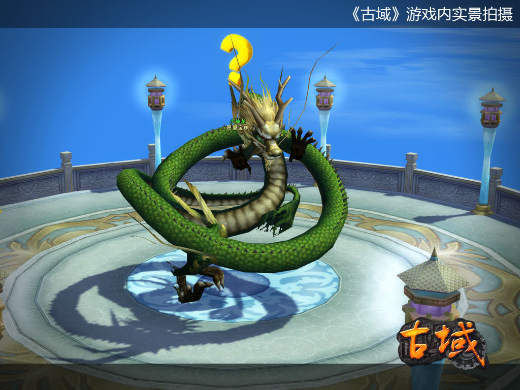 传说中能够实现凡人愿望的神龙也穿越到《古域》当中,成为了发布日常任务的NPC!放在其他游戏里看上去无比奇怪的设定,在搜狐畅游年度穿越代表大作《古域》中反而变得奇趣无比。除了经典漫画中的关键人物,《古域》同样少不了其他作品和时代的知名角色鼎力加盟,让游戏变得欢乐无比! 神龙现身,还不赶快向他实现自己的愿望 还原度极高的神龙就在百工天都的东北方向 出现在《古域》主城百工天都的愿望神龙,不仅形象与动漫原作中的高度一致,连任务系统也向这位颇具东方风格的神龙致敬——接取任务的玩家最好组织多名队友,尽早完成神龙的任务,才能尽早得到更多的愿望宝珠,这可是随机获取各种极品装备的重要来源。