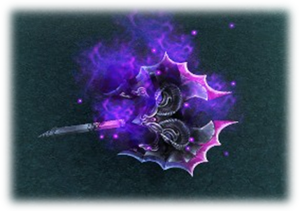 暗属性武器: 不存在人界的紫色火焰,散发着妖娆的光。纯粹的黑暗物质流动在武器的表面,每一次击打,武器就像毒蛇一般吸收着那可怜生物的生命能量。暗属性武器的特有衰弱诅咒与吸血效果,无疑是那些独行侠们最好的搭档,如果武器还恰巧是一把镰刀的话…..那,简直活脱脱就是一个异界死神!