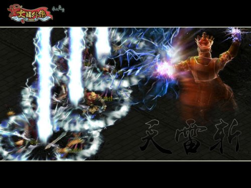 可不一般的绝世武功 可以瞬间绝杀的“天雷斩” 好玩指数:★★★★☆ 挑战指数:★★★☆☆ 好玩理由:真不敢相信回合制战斗也有可与即时制媲美的炫目技能!你也许只看到大外怒气技的其中一面,大外的每个门派都有一招能够在瞬间绝杀一切或起死回生的怒气技能。像瑶池的“天雷斩”能唤九重天上之雷电,可对敌人五个目标同时进行致命的法术攻击。而普陀的慈航却能将队友全部复活,并增加所有队友的气血。掌握此等绝世武功,不但可以随时拯救战局,还可炫耀万众。