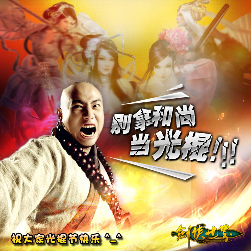 亲爱的玩家:在这个寒冷的初冬,你是否还形单影只,寂寞的心与枯叶一起萧瑟在秋风中?如果是,那么恭喜您,因为您的节日“光棍节”即将来临了。在这个即“另类”又略带“尴尬”的节日里,哪里才是您最理想的归宿呢? 好吧,让我告诉你,《剑侠世界》将于11.11.11时开启光棍节新服,一系列属于光棍的特权和活动,将让您彻底找回作为一个光棍的骄傲与自豪。 光棍节的两组新服开启时,不但推出全新的金山1111元光棍卡、光棍头衔面具、还有“官方认证光棍”系统、升级后的“认证光棍”将独享一系列的游戏特权、此外“认证光棍”冲级赛优胜者还将获得官方资助的“海南双飞游”和200份各种数码和游戏外虚拟奖品。为天下所有光棍玩家都打造一处充满情的港湾! 光棍节新服:网通(如意区:缘定今生) 电信(金麟区:今生缘) 11月11日11时两组光棍节新服开放:除了以往开服多重大礼外。此次两组新服可以说是专为光棍节和广大光棍朋友们量身定做,开服便送两份大礼。 礼物1:剑世1111元光棍卡,光棍人人都需要; 礼物2:可选择数种光棍称号的光棍面具。 关于“官方认证光棍”说明及申请方式 官方认证光棍名额为500名,数量有限; 必须为20周岁以上未婚男女; 从11月11日开始至11月16日,通过官方认证的都算认证光棍,前提是在500个名额之内。 申请“认证光棍”需发送以下资料到:shichanggonggong@kingsoft.com 1)手持“未婚证”、“离婚证”、“光棍证”、“处男证”(自制的不算)等等官方或非官方“证件”的真人照片,证明自己是光棍。照片必须压缩至1MB之内,并注明该照片是否授权官方使用; 2)附上两组新服其中一组中建立的角色名称,并且官方查有此人! 真实姓名;详细邮递地址;QQ号和手机号码; 注:上述报名资料信息不全或有明显漏洞者,将无法获得“认证光棍”资格。所有通过认证的光棍我们都将给您回复邮件,并且开通游戏内“认证光棍特权”及自动将您计入冲级赛活动的统计名单中。 3)“官方认证光棍”除了获得“1111元光棍卡”,在将在随后获得神秘道具。 4)参加官方为“认证光棍”特别组织的冲级赛活动,级别前200名的玩家都将获得相对应的奖品。大奖是官方赞助的海南三亚双飞游。 光棍节主题图