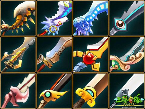 男性人族武器——刀剑和笔 首先介绍男性人族的武器:刀剑和笔。在男族人性角色可以选择的门派有御林军、化生寺、三星洞,故这三个门派都可以使用这些武器。无论是刀剑还是笔,它们都有各自的功效,刀剑偏于物理系,而笔偏于法术系,随着等级的提高威力也随增加。 三界奇缘刀剑武器原画 |