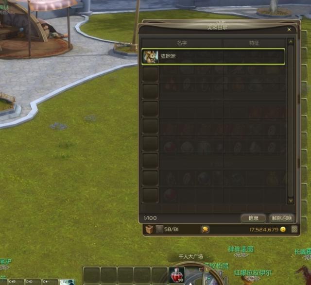 点开宠物目录,选中你要使用的宠物 这是观赏型宠物的窗口