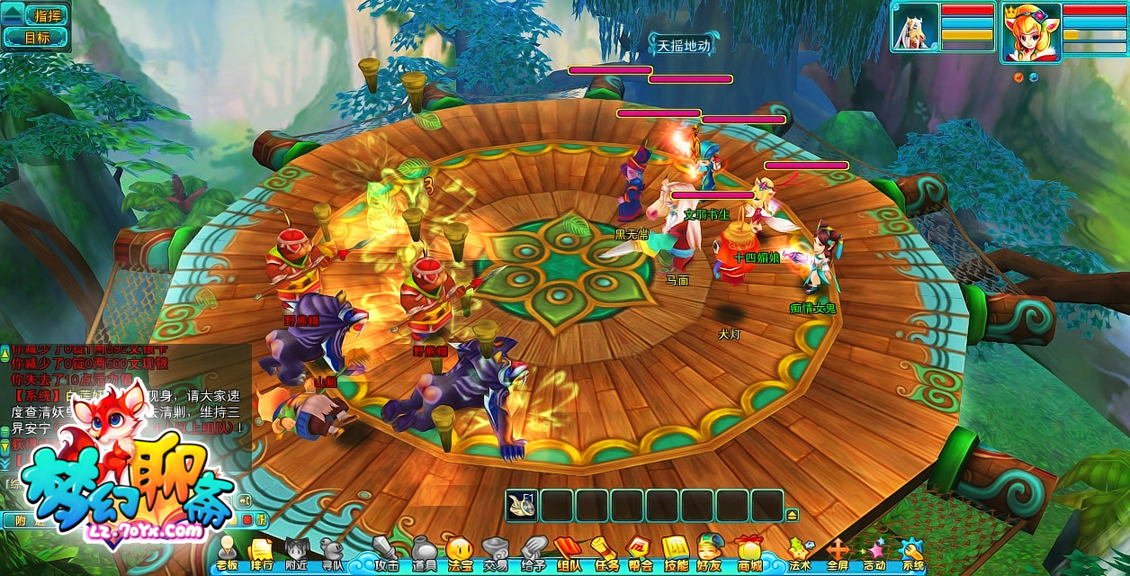 五大门派 3D渲染技能华丽 《梦幻聊斋》视频中首先体现着各个门派的攻击特色,利用组队作战场面及门派场景切换的形式,将兰若寺、崂山观、阴阳界、安期岛、神机营五大门派技能一一展现。不管是在观看战斗还是场景,视频中均使用3D技术将画面以360度不同角度环绕展示,3D全相位系统的纵深展现,使各个门派的建筑物表现的更加宏伟。由此充分体现了3D技术与五行门派系统的完美结合,各种角度将门派的华丽技能渲染在游戏场景中。 3D视角尽享门派作战的乐趣