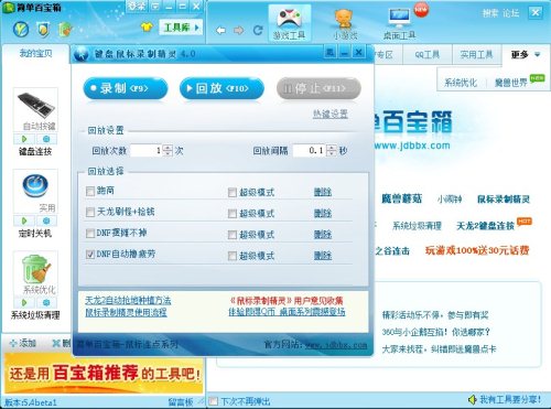 哥布林的狂躁!远古时代的天空城,还有那暴力至极的枪炮恶棍!第十章最为给力的非“异界”三图莫属。强力的远古装备(国服译为勇者装备)更是让无数玩家心仪不已。大批的满级玩家开始纷纷投入了异界之旅。这时,敏锐的商人自然开始蠢蠢欲动了,珍贵的异界材料一时间成了阿拉德大陆的热销货。只要你的价钱公道,低价收购,均价贩售,摆个摊稳赚不赔!不过繁琐的叫喊收获,和长时间的待机却让不少准商人和游戏玩家望而却步!不少玩家应该都体会过,为了贩卖装备而“喊破喉咙”的经历吧!而这款《键盘鼠标录制精灵》则拥有着洪亮的“嗓音”和全天候的“耐力!”通过对摆摊和喊话的游戏行为进行键盘鼠标录制,仅需要一遍操作,剩下的就是不掉线的摊位和火力全开的自动喊话了!无论你是收购材料还是“无照”出售装备,仅需点击回放,接着的就是坐享其成啦! 现如今,DNF的玩家仍旧以学生居多,平时课业繁忙,游戏的时间并不是很多,大量的繁琐动作也使游戏时间大大缩水,更何况网游也是一个微型社会,游戏中的货币储量同样相当重要,偶尔当下商人则是财力储备的必要手段之一。当初,这款工具也是经朋友推荐的,后来我又逐渐发掘了出了更多的功能,原先的游戏时间里能做的事情更多了。不仅省时省力,更能赚到不少游戏币呢!这样的好事当然要跟广大DNF玩家分享啦!想要“一劳永逸”的,想要“勤劳致富”的,工具地址就在下面,还在等什么!快去“邪恶”吧! 键盘鼠标录制精灵界面 |