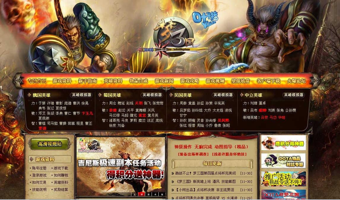 梦三国: 叶子猪梦三国官方网站合作专区,为广大梦三国OL游戏玩家提供最新的梦三国官方资讯、游戏攻略、游戏比赛视频、梦三国插件下载和梦三国英雄模拟器,同时还提供梦3国客户端下载及新手卡,内测号。 叶子猪游戏专区:点击进入