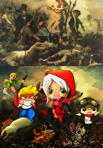 《自由引导人民》 德拉克罗瓦 反映1830年革命的《自由引导人民》是德拉克罗瓦最具有浪漫主义色彩的作品之一。当龙之谷的Q版可爱人物跃于名画之上又会带来怎样的革命呢? 作者:基督山伯爵