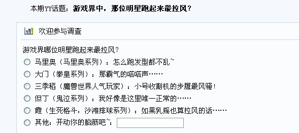 游戏亚运会活动 “微生物”活动之一:YY无极限 来自不同游戏的各位游戏明星一起来竞赛,比赛谁跑起来最拉风!大乱斗更需要你的大创意,如果是我一定就把劳拉写上去了,她的身手那可是一定最拉风的。你的选择呢?开动你的脑筋,想想还有你最钟意的游戏界明星么?