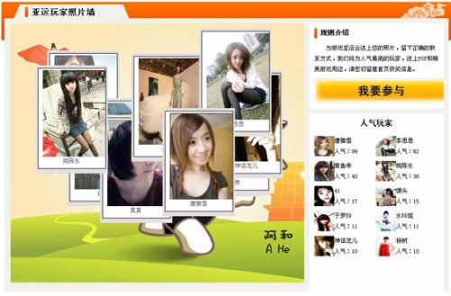 美女玩家 “微生物”活动之二:真人秀场 “微生物”们的真面目如何?这里是我们的单人秀场,秀出我们的气质与个性。和亚运宝贝“乐羊羊”比比谁更有人气!
