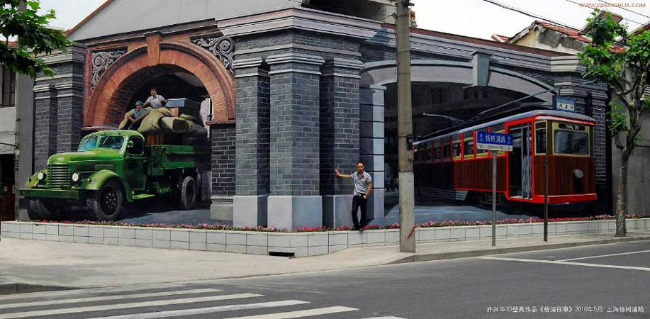 图10 为世博会创作的立体画,仿佛穿越回到过去的时光