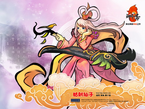 Q版姑射仙子 姑射弟子以琴为武器,气质清雅脱俗,却在此次的Q版壁纸中变身为倚琴发呆的思春少女。