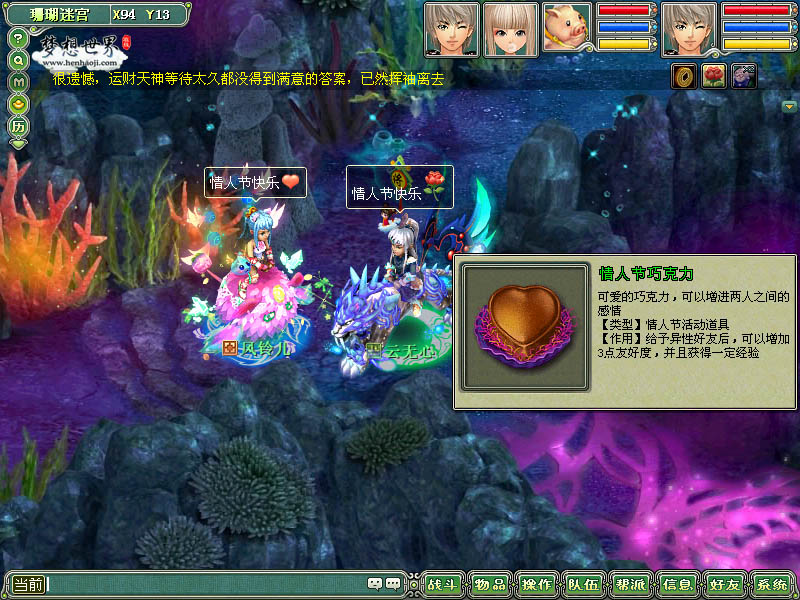 情人节谱写你我的浪漫童话 新春欢乐气氛丝毫未退,浪漫的情人节就接踵而来。今年的情人节,《梦想世界》搭起了大舞台,让你和你的她谱写最美丽真实的童话故事,协助青蛙王子营救鱼人公主,为灯神修补阿拉丁,与幽灵船长大斗法,为她送上爱意浓浓的心形巧克力,奇幻浪漫的历险,过一个最难忘的甜蜜情人节。 闹元宵,猜灯谜 压轴的元宵佳节,冬日缤纷料理节没有半点马虎。闹元宵,猜灯谜,才子佳人结伴同游。挑战智慧的灯笼,寻找迷失的灯笼,正是智慧与勇气并重的你邂逅梦中情人,一展才华的绝佳机会。 回顾这个冬日缤纷料理节,活色生香畅快60天,总有一种味道叫你想入非非。期待2011年的《梦想世界》将会带来更多新奇好玩的网游美味大餐。 关于《梦想世界》 《梦想世界》是多益网络自主研发的大型回合制网络游戏,以各种独具特色的玩法,为玩家创造出一个现代和古典交融的奇妙世界,让玩家一展所长,实现心中之梦。同时,《梦想世界》也是一个娱乐性极强的虚拟世界,玩家在游戏中可以创办工厂、交易股票、发明科技、成立帮派、订阅报纸、建设家园,享受前所未有的乐趣。 更多游戏详情,请关注多益网络《梦想世界》官网(http://mx.henhaoji.com) 《梦想世界》官方网站:http://mx.henhaoji.com 《梦想世界》客户端下载:http://mx.henhaoji.com/down/down.html 《梦想世界》帐号注册:http://mx.henhaoji.com/file/service/register.html 《梦想世界》新手指南:http://mx.henhaoji.com/file/mffreshmen/index.html 《梦想世界》,最好玩的回合制网游! |