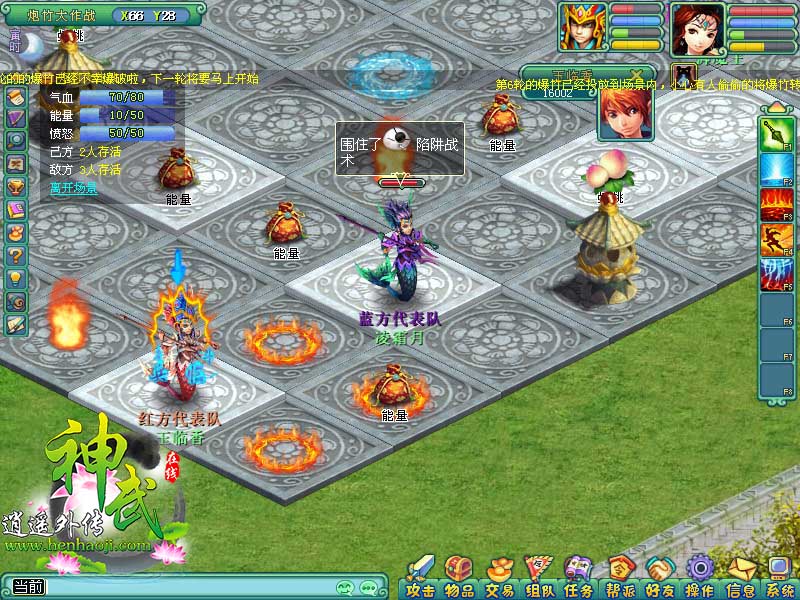 最喧闹激动玩法 爆竹大战 想象一下,你被一群随时可能爆炸的爆竹包围了,恨不得慕容复附体,一个斗转星移,将危险转化给对面的漂亮MM。爆竹大战就是这样一种玩法,大家拿起爆竹来作战,想尽办法“阴”对手,有能量弹可以释放神奇技能,有蟠桃关键时刻救你你一命,当然还少不了丰厚奖励,三界悬赏令和虹彩可是人人都想要的宝贝!