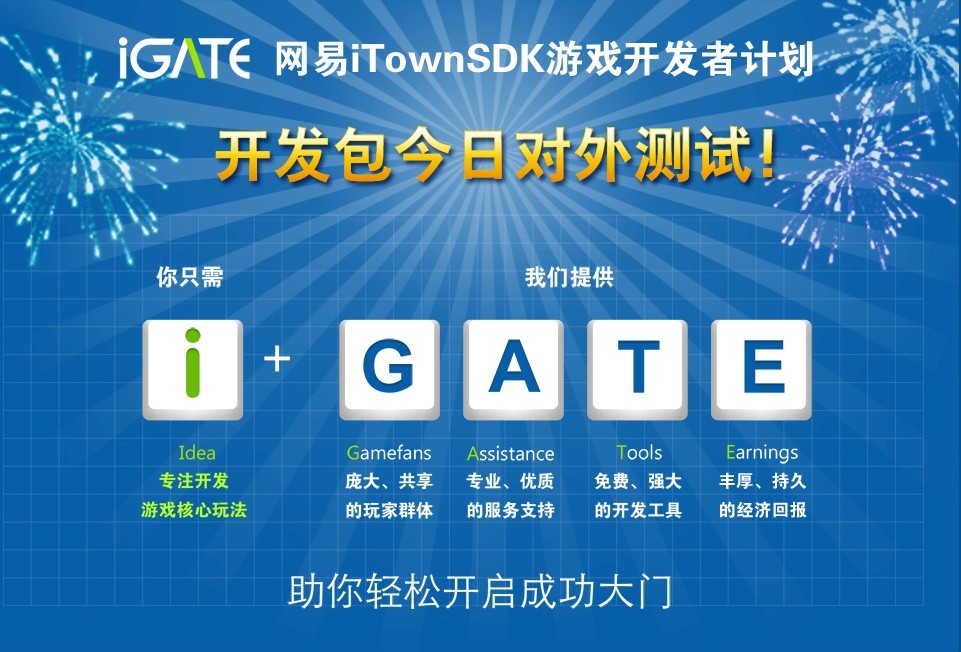网易iTownSDK(iGate)游戏开发者计划自去年年底宣布接受申请以来,受到了业界的广泛关注,开发者也踊跃提交申请。在经过网易内部的重重测试之后,今日,iTownSDK终于正式上线,开始对外进行测试。