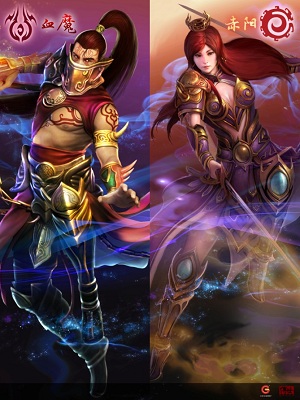 血魔:魔阵营中的近战冲锋者,华丽的外表特效俘虏了多少玩家的心呢! 赤阳:仙阵营中的力量派,擅长近战和防御,是个很威武的拉怪血牛哦!