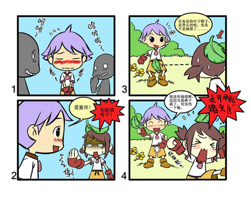 《圣经》有言,亚当夏娃在吃了智慧果后,开始有羞耻之心,于是取了树叶来遮挡自己…… 伟大的NPC大叔,您是用这睿智的比喻来暗示,完成任务后,我们这些新手、菜鸟就成功的跨越了蒙昧,成长为高级人物了么?原来如此…… 爱德华,你这个变态快走开!人家树叶是戴在头上的啦…… NPC大叔温馨提示:衣服坏了可以购买或者打怪中还能掉落更好的服装哦,傻到爱德华这个程度的也真是难得了。下次再把我的装备用错地方,我就秒杀了你们…… 爱蜜丝和爱德华都是《光之冒险》中的极品,虽然,我们没有和NPC大叔发生这么多故事,但是这片可爱的树叶依然在我们的记忆中留有深刻的印象。伴我们闯过矿山,迈过平原的小树叶,是否还留在你的背包或仓库里,或是早已随风而逝了呢? 菜鸟时代艰辛但确是那样美好,就让我们怀着这么多美好的回忆,继续大步向前吧~ 更多玩家四格漫画还会陆续呈上,敬请期待! 《光之冒险》代言人活动正在火热进行中! 张翰活动专区:http://mxevent.tciplay.com/zhuanqu/Index.aspx |
