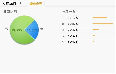 年龄分布:20-29岁玩家段为魔兽世界玩家主要年龄段。