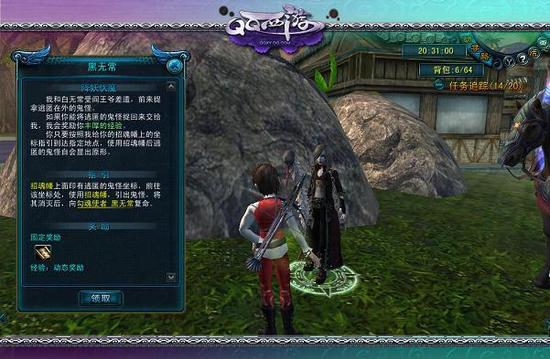 重金悬赏出勇者 众妖跑环捉鬼忙 面对巨额经验的诱惑,妖人早已将取经大业抛诸脑后,倾力投入全民捉鬼行动。每日10次黑无常单人捉鬼、5次白无常组队捉鬼,根据招魂幡显示的坐标,让众小鬼束手就擒无所遁形。黑白无常早已备下诱人奖励,大量经验犒赏捉鬼勇士。从18级到25级,满足各阶妖人需求,丰厚经验轻松到手,等级飙涨直通妖王宝座!