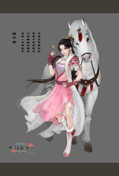 又到了大话西游2新资料片《器定乾坤》万众期待的爆料时间,这次要揭开的是集万千宠爱于一身的俏千金新形象的神秘面纱了。 “纤腰玉带着红纱,谁家千金貌若花。刀枪掩映芙蓉面,回眸一笑胜星华。” 出身长安富商家,是个聪敏、灵巧、讨人喜欢的女孩子。为人善良、出手大方、常常会为了自己看不过的事情出头。偶尔会摆出一副千金小姐的脾气,娇蛮任性起来可是谁也奈何不得,让人觉得可气又可爱。 俏千金喜欢把自己打扮得漂漂亮亮,穿精致的衣服,戴精美的佩饰。她留着两条长长的辫子,整整齐齐编好梳在脑后。每每跳跃跑动,辫子也随之而动,很是可爱。 精美的新俏千金原画 俏千金从小跟着家中的武师习武,学得一手好刀法和好枪法。每到舞刀弄枪之时,轻灵跃动,犹如燕子穿梭,姿势十分好看。 新俏千金刀施法效果