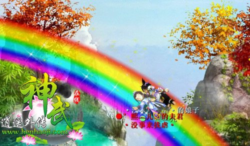 相伴“扑倒”,彩虹鲜花来陪衬 即便是“扑倒”,玩家也玩得相当有创意,拿彩虹、鲜花当陪衬,和爱人相伴卧倒在彩虹上,是不是有一种想让时间永远停留在这一刻的感觉呢;或者一人痴痴躺在花丛中,等候着爱人的归来。玩家能表现出如此唯美的意境,真是太有才了!而在《神武》里,更多的则是帮派队伍里一起浴血奋战的兄弟们,大家一起杀敌闯关,出生入死,早已血浓于水。谁说只有爱情才可以惊天地泣鬼神,兄弟情义一样情比金坚,感天动地。 唯美彩虹,相伴一生
