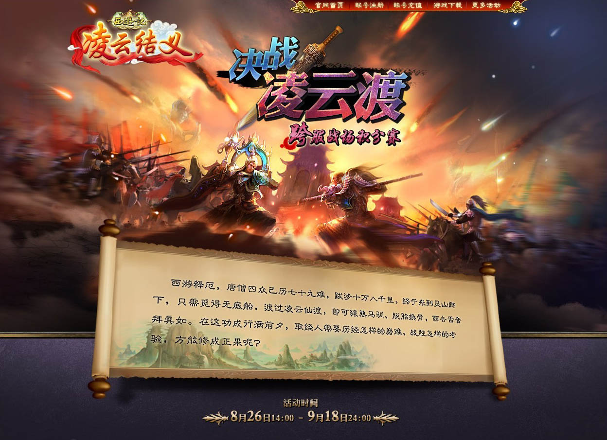 五大公测活动 精彩不容错过 自8月26日起,《西游记》“凌云结义”资料片五大公测活动将陆续火热开启!对新手玩家来说,只要在资料片公测期间登录游戏,创建1级角色即可获得价值798元的结义大礼包!领取官方特别推出的“结义卡”,与新朋友一起结伴升级还有机会获得个性称号、超炫飞行坐骑、海量经验金钱等超多丰厚的线上大礼;对于老玩家来说,“寻找遗失的你”活动帮你一起召唤昔日老友重返西游,与你一起再度并肩战斗!而参加“决战凌云渡”跨服战场积分赛,展现王者风范,即可靠自己的PK实力赢取iPod Touch等数码大奖!此外,更有奖励更加丰厚的门派首席弟子争夺赛、双倍经验连续开放等精彩线上活动,让你畅享升级PK乐不停! 赶快邀请你的好友一起加入西游之旅,领略凌云渡的壮丽风光,感受跨服战的豪情壮志,彰显兄弟间的深情厚谊吧! [编辑:明白夏季后] |