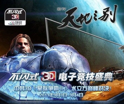 中国首届3D电子竞技盛典将于2011年9月3日在国家游泳中心水立方拉开帷幕。由LG Display举办的中国首届3D盛典,将为中国消费者带来世界一流的3D视听感受,让广大消费者通过真实的现场参与感受创新的3D视效体验。