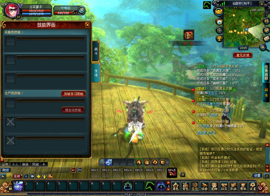 (生活技能) 生活技能方面,采集类技能可以有三个,而生产技能则目前只能选择一样,但达到某种条件后,可以突破限制,开启到三项。 社交: (社交面板) |