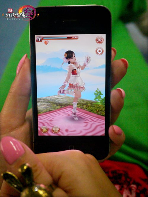 近日网络疯狂流传一组照片,一位MM的IPHONE中出现疑似新剑网3手机版游戏的组照,而且画面效果和游戏人物设定都非常逼真,这究竟是怎么回事呢?新剑网3出手机版本了吗?我们一起来一窥究竟! 照片中,一位MM手中拿着IPHONE手机,手机中出现新剑网3的萝莉角色,而且还有类似游戏类的按键和选项。由于只有照片,我们无法求证是由玩家恶搞,还是是将图片PS过之后进行的DIY作品。为搞清事实的真相,我们求证了专业的美工人员,发现此照片没有经过任何科技含量的改动!那这究竟是新剑网3新鲜出炉的新游戏,还是手机桌面的截图呢? 照片显示,疑似新剑网3萝莉的角色作出各种唯美的舞蹈动作,不但正面、侧面、背面均有照片取证,而且萝莉的全部动作都非常协调,画面设定也非常细致。如果这真的是新剑网3手机版本的游戏,将什么时候与大家见面呢?游戏中将会出现那些精彩内容? |