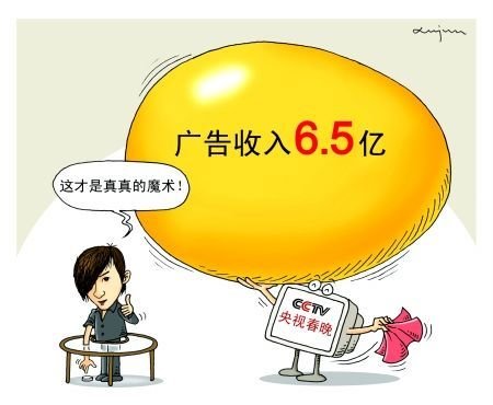 植入广告铺天盖地惹众怒,央视官网被黑 2010年春晚可以说是一届植入广告的春晚,从赵本山小品里的国窖、到刘谦魔术中的汇源果汁,植入广告之多、展示之明显为历届春晚之最。有消息曝光春晚赞助商名单及展示方式,指春晚广告收入6.5亿,更有消息称小沈阳因在小品中少说一句广告词而被赵本山掌掴。一台全球华人的文化年夜饭却成了广告商们的曝光台,显然让大伙儿“吃的不爽”。大年初三,央视官网被黑两小时,一度被指是网友发泄不满“出此下策”。