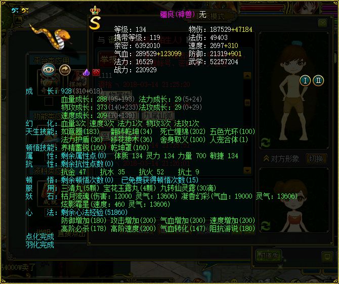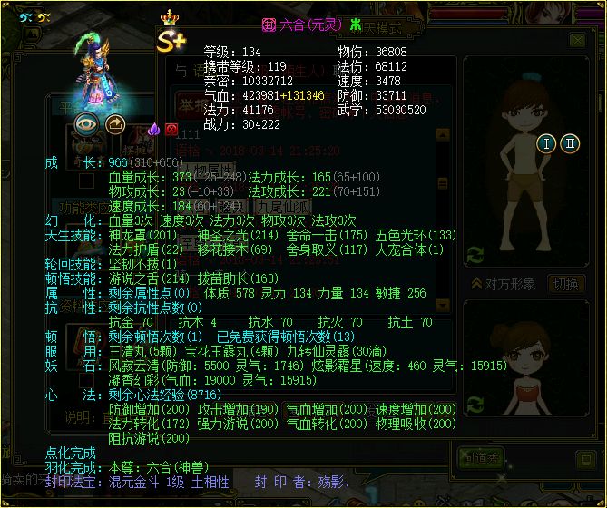 记者:哇哦,六合本神也漂亮啊,不过变了更漂亮了,体敏? 语梒:是的,因为六合本身法伤不是很高,气血挺高,但是速度慢了点,所以加了一些敏。