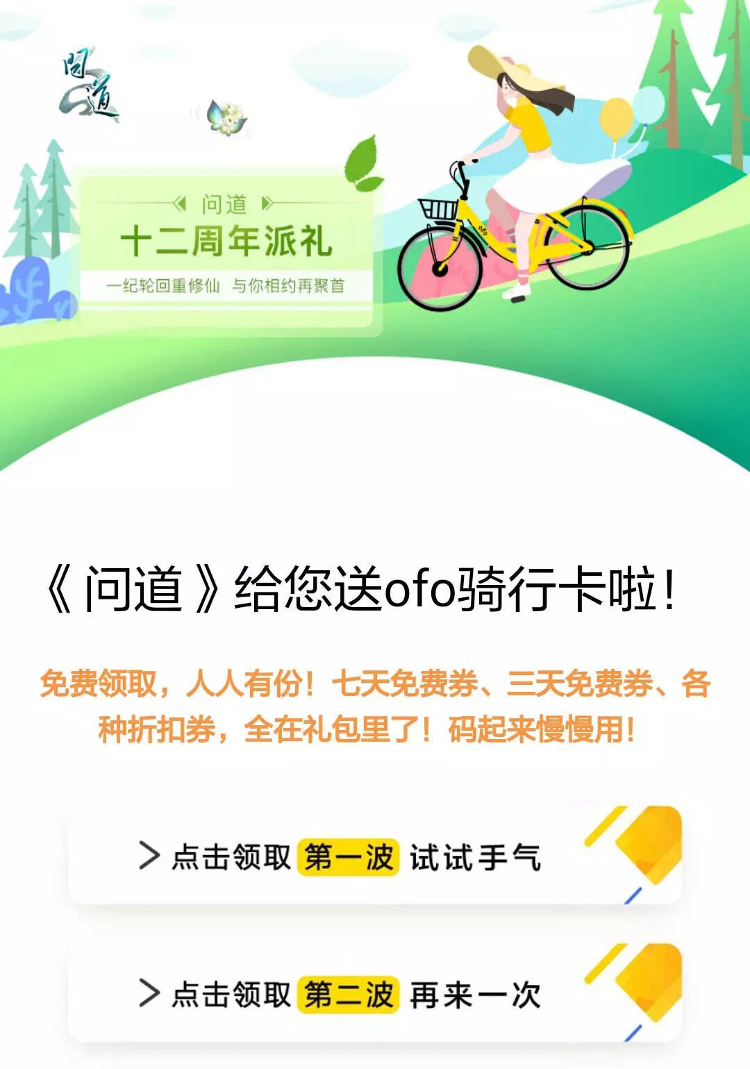 十二周年派礼 《问道》给您送ofo骑行卡啦!